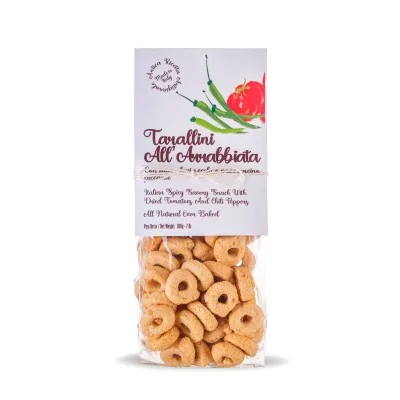 🌾 Rodzaj: Tarallini (małe, chrupiące przekąski pieczywne) o smaku Arrabbiata