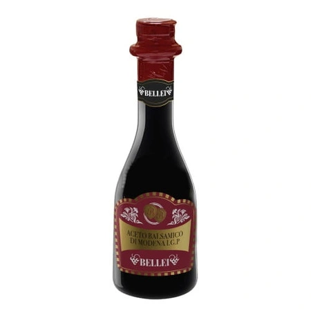 Ocet Balsamiczny Modena IGP Rossa 250 ml Bellei to intensywny, aromatyczny ocet o słodko-kwaśnym profilu i aksamitnej konsystencji. Idealny do sałatek, marynat i włoskich dań, które potrzebują głębi smaku. 🍇✨