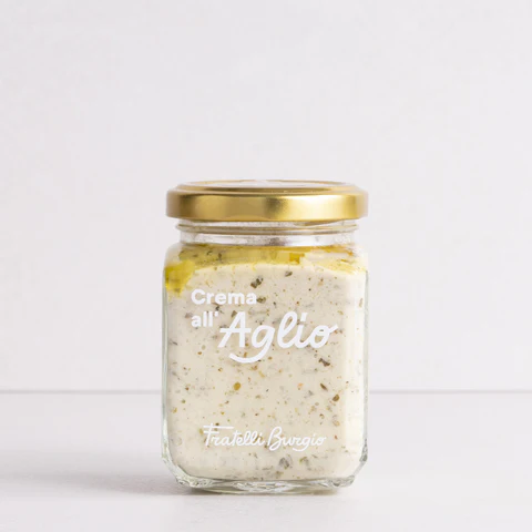 Fratelli Burgio Crema all’Aglio 85g to wyjątkowy czosnkowy krem włoskiej produkcji o intensywnym aromacie. Doskonały do grzanek, makaronów, mięs i dań śródziemnomorskich.