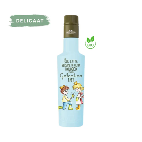 Galantino Olio Extra Vergine di Oliva Biologico Baby 250 ml to delikatna, ekologiczna oliwa z oliwek idealna do codziennego użytku. Doskonała do sałatek, makaronów, warzyw i pieczywa w śródziemnomorskim stylu.