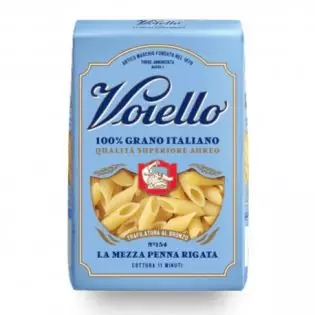 Voiello La Penne Doppia Rigatura to makaron rurkowy ze złotej pszenicy Aureo z podwójnymi rowkami. Idealnie zatrzymuje sosy, gwarantując wyjątkową teksturę i smak.