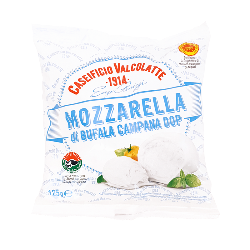 Mozzarella di Bufala z serowarni Caseificio Valcolatte to luksusowa odmiana mozzarelli o intensywnym, lekko kwaskowym smaku i soczystym wnętrzu. Wykonana z mleka bawolego, ma bardziej kremową i wilgotną strukturę niż klasyczna Fior di Latte. Świetnie sprawdzi się w sałatkach caprese, na pizzy gourmet, w przystawkach lub po prostu z oliwą i świeżymi pomidorami.