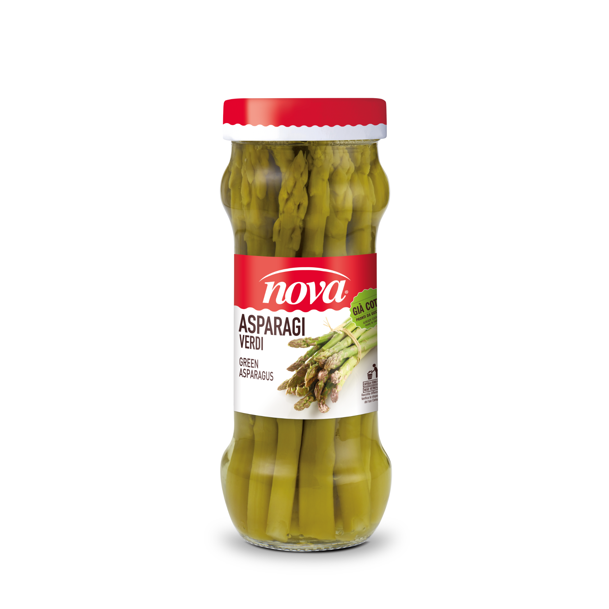 Nova Asparagi Verdi to wysokiej jakości włoskie zielone szparagi konserwowane w słoiku, zachowujące świeżość i chrupkość. Produkt idealny dla osób ceniących zdrowe, naturalne warzywa gotowe do użycia w sałatkach, przystawkach i daniach kuchni śródziemnomorskiej. Bez dodatku sztucznych konserwantów.