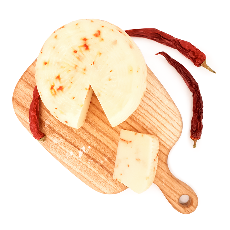 Dodatek ostrych papryczek nadaje serowi charakterystyczny południowy temperament – idealny dla miłośników pikantnych włoskich smaków.